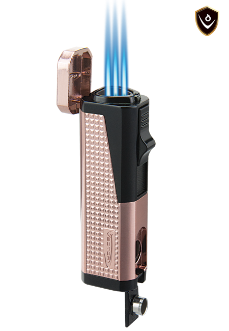 • Punch cutter, triple flame, fuel gauge, diamond grip. Windproof, durable metal. Perfect for on-the-go.
