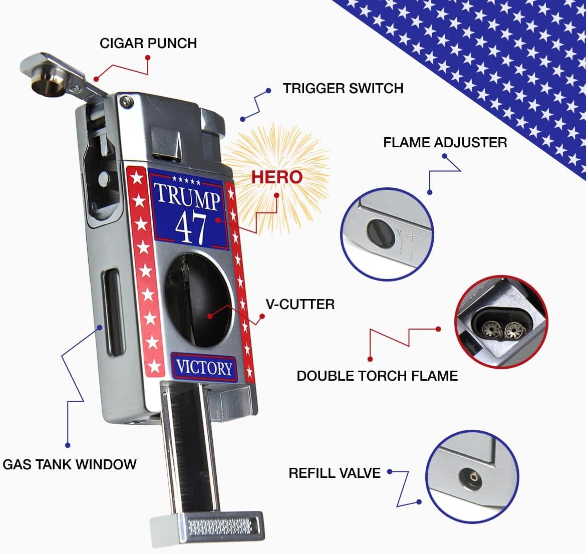 • A Gift That Makes a Statement – Presented in a premium display box, this collectible torch lighter is a meaningful choice for patriotic enthusiasts, cigar lovers, and collectors.
